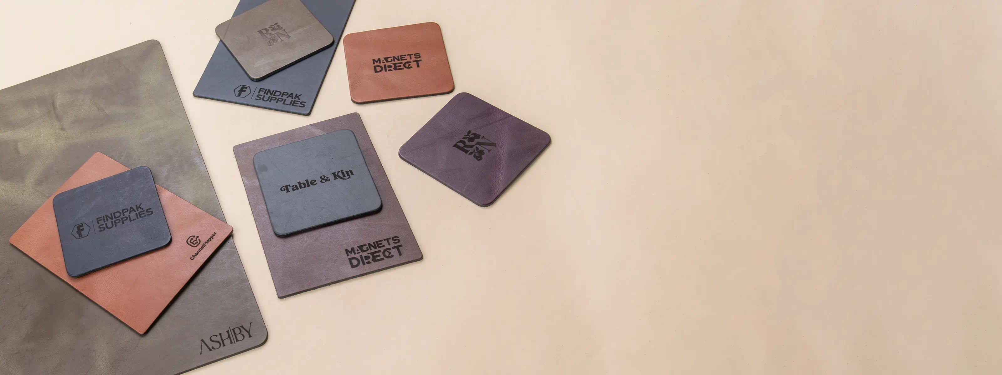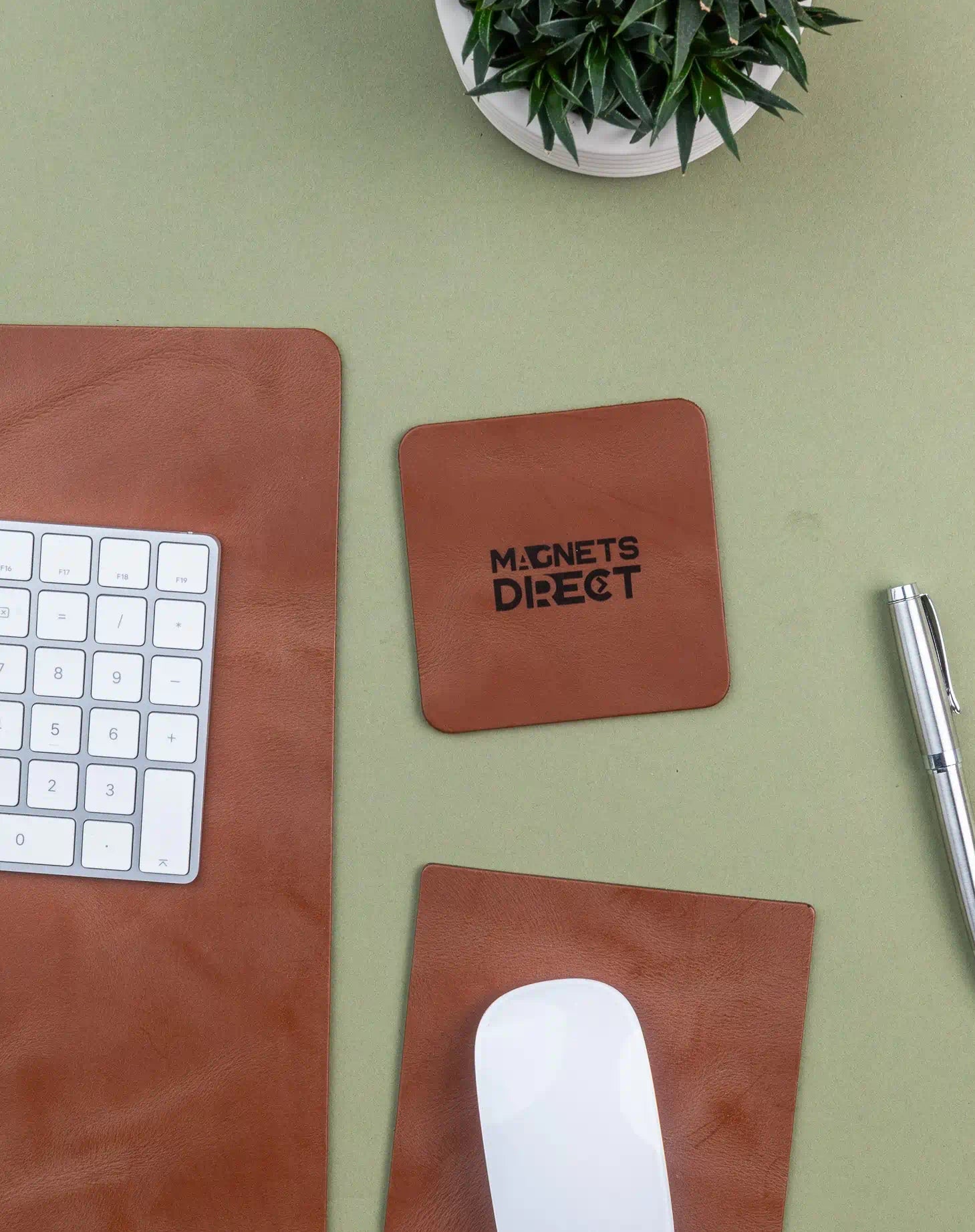 Add a professional finish to boardrooms, open-plan workspaces and reception areas with our branded desk mats, mouse mats and coasters. Available in seven colourways and crafted from bonded leather, they’re designed to be practical, hardwearing and smart.