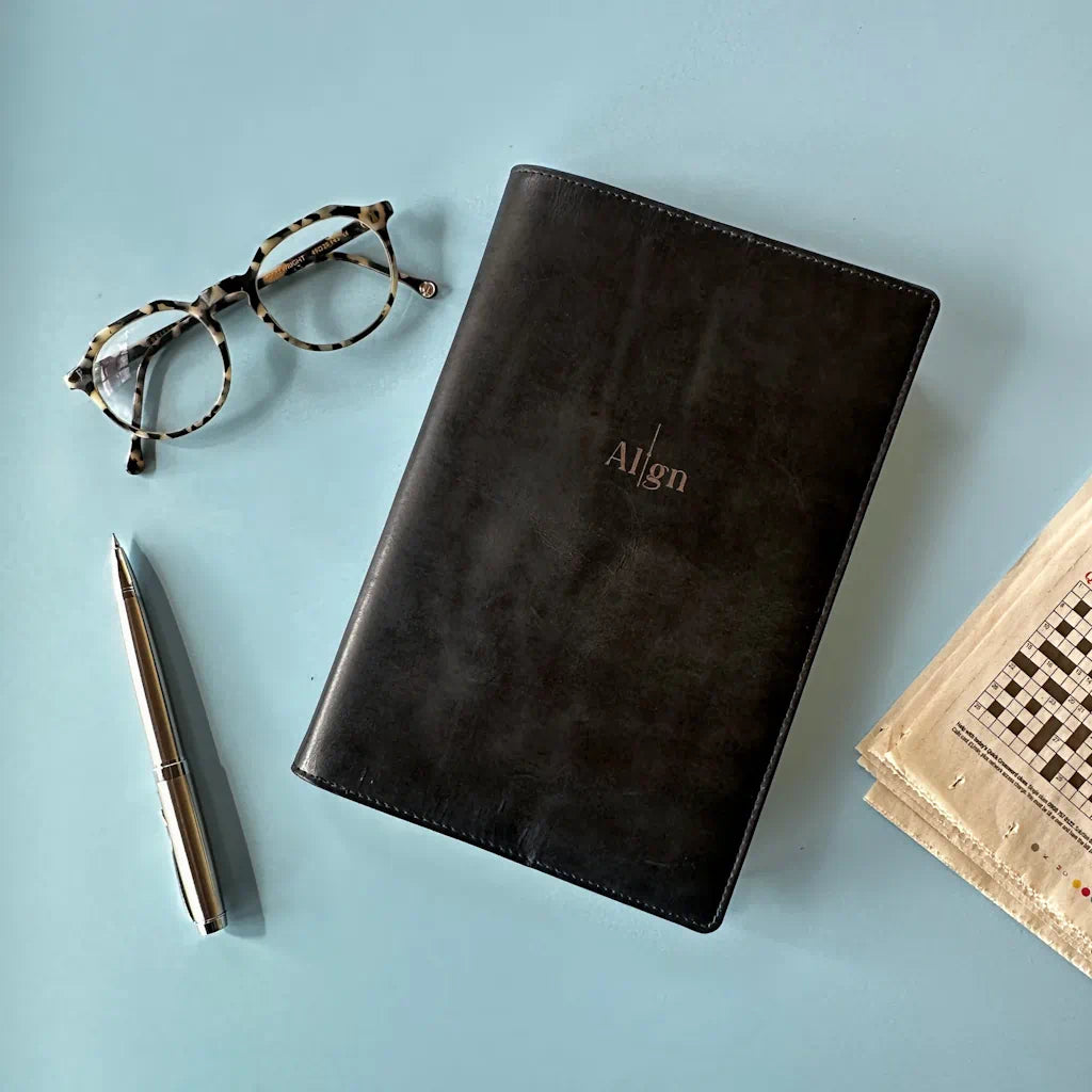 Practical pieces that keep your brand in use every day. Our leather notebook and diaries have premium leather sleeves and stone paper inserts. These are designed to be used year after year, with refillable inserts and leather that gets even better with age. To complete the range, we also offer matching pen cases and glasses cases.