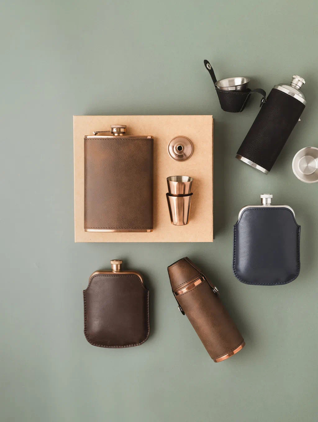Our range of hipflasks and hunterflasks make ideal additions to gift hampers, retail collections, away days and client incentives just to name a few. With a choice of styles and leather colours, each one provides a smart blank canvas for your brand or campaign message.