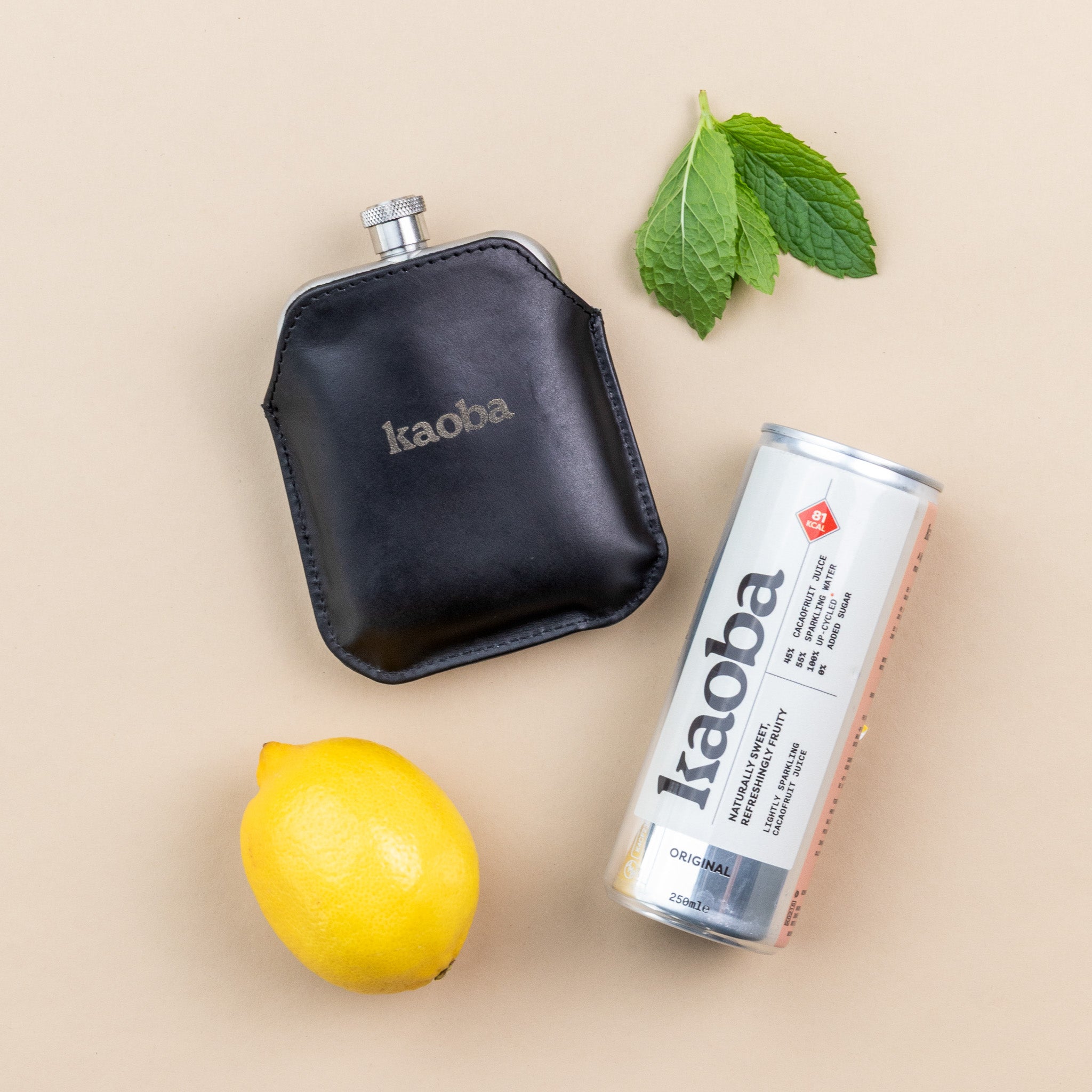 Kaoba, an innovative drinks brand turning unused cacaopods into refreshing fruit sodas, customised our hip flasks to enhance their cocktail-making content and brand storytelling.